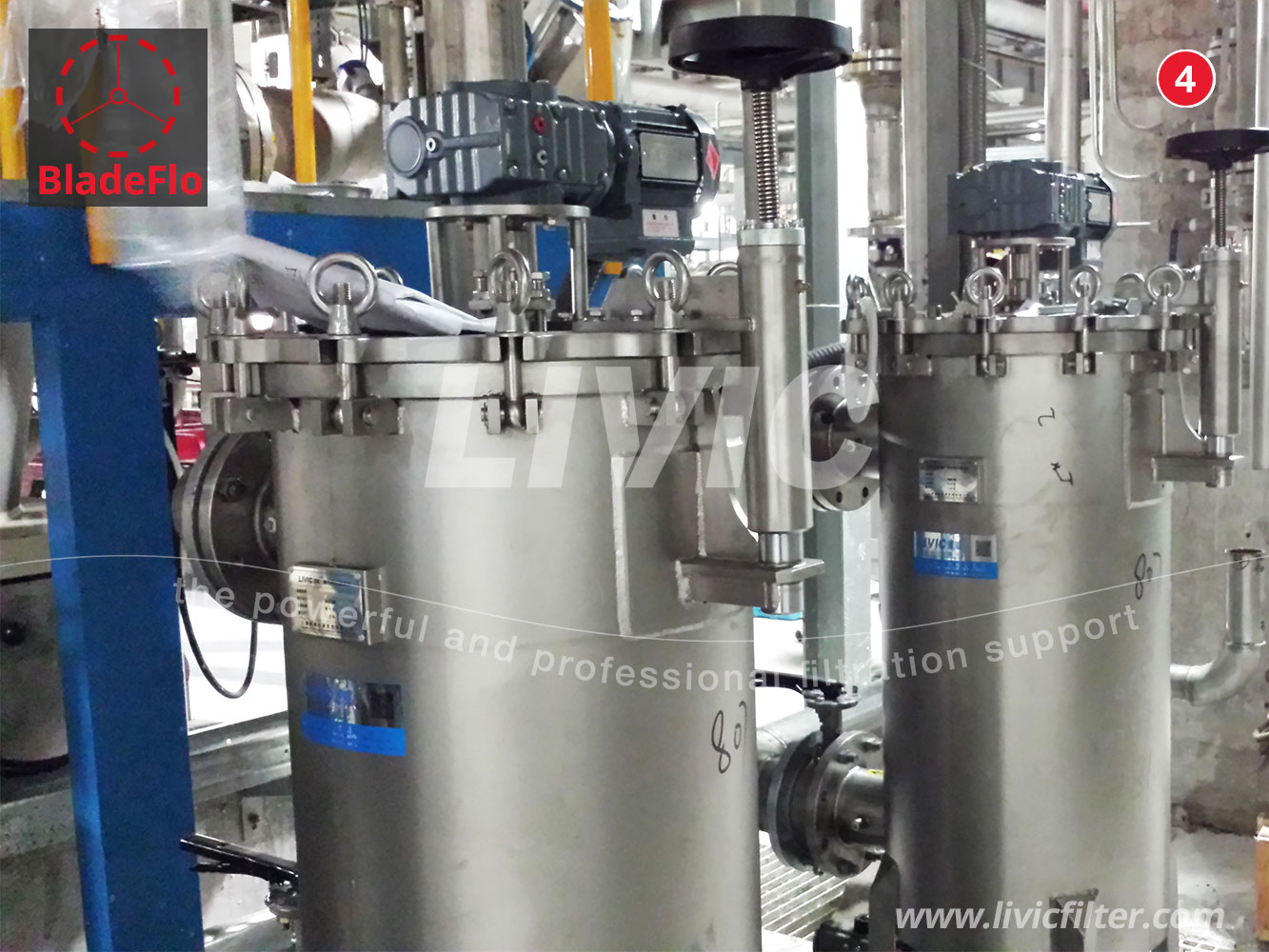 BladeFlo®自清洗过滤器,是LIVIC滤威自主研发的高效刮刀式自清洗过滤器。通过机械刮除方式来自动清除滤元内表面的颗粒杂质,能够连续在线过滤,终结繁重的滤元更换清洗工作,不产生一次性抛弃的过滤耗材,节约耗材成本及环保处理成本。过滤压损极小,流量稳定,节省管路能耗,利于工艺连续稳定,密闭过滤,防止危险性物料泄漏,有利于安全生产。BladeFlo®,以电机驱动刮刀旋转,刮除滤元内表面杂质,适合超高粘度及粗精度过滤。
